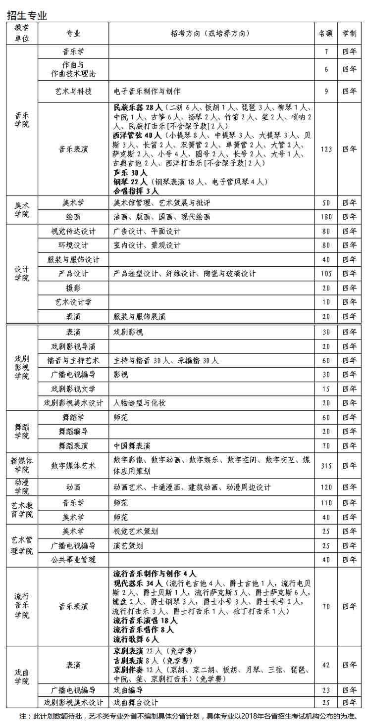 注:此计划数额待批,艺术类专业外省不编制具体分省计划,具体专业以2018年各省招生考试机构公布的为准。