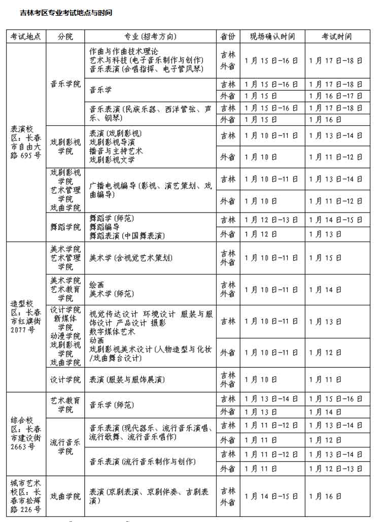 5、由于外省考点多数使用网上报名,各考点原则上只接受本省考生参加专业考试。未设置考点的省份,请考生到吉林艺术学院(吉林省长春市)参加考试。