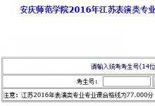 安庆师范学院2016年江苏省表演(体育艺术表演)专业成绩查询网址入口 考生可通过输入14位统考考生号查询成绩及合格排名名次