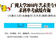 广州大学2016美术设计、播音主持、广播电视编导、舞蹈、模特表演单招校考成绩查询网址