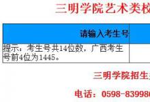 三明学院2015年艺术类专业成绩查询网址入口 考生专业考试成绩及名次通过我校招生信息网和考生所在省考试院网站公布,考生可凭考生号等信息查询,不再寄发纸质成绩单。