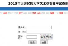大连民族大学2015年美术类校考专业成绩查询4月1日开通,查询成绩的用户名为考生姓名,密码为考生的身份证号码。合格考生可登陆系统,打印专业合格证。