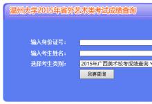 温州大学2015年美术类专业成绩查询网址入口 凡参加我校专业校考的江苏省、广西壮族自治区考生,将于2015年4月1日左右在温州大学招生网公布考试成绩