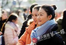 重庆艺考大幕拉开 考生美丽冻人考场外等候考试的女生虽然天气寒冷,女生们为了形象,露腿上考场。昨日,重庆市2016年普通高校招生艺术专业考