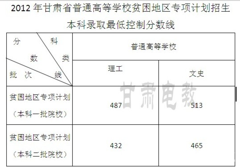 从甘肃教育厅获悉,甘肃省招办公布了甘肃省2012年高考第一批、第二批普通本科和民族院校本科的最低录取分数线。一本线,理工:517 文史:533;二本线,理工:462文史:485。民族院校民族班理工390分,文史410分。