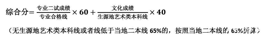 1.文化考试成绩达到生源所在地艺术类本科线(无生源地艺术类本科线或者线低于当地二本线65%的,按照当地二本线的65%折算)