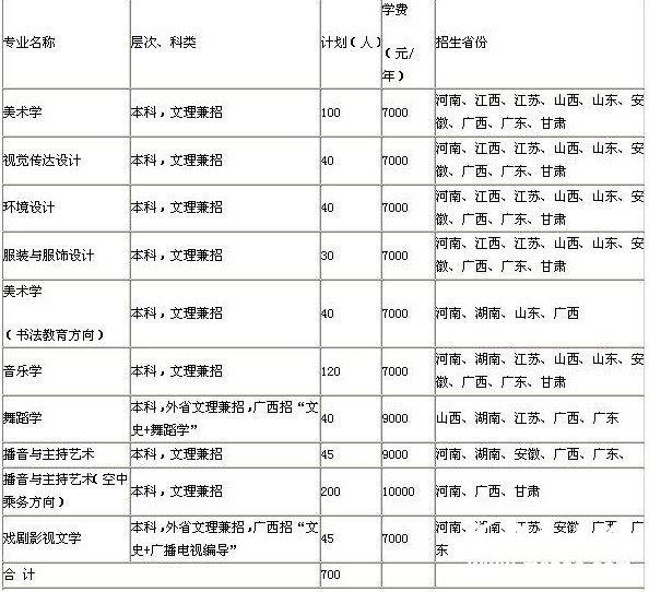 2013年广西师范学院艺术类专业招生简章