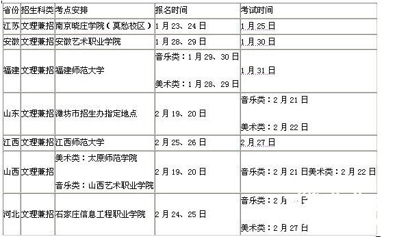 湖南人文科技学院2013年艺术类专业考点及时间安排