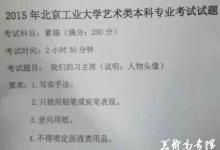 北京工业大学2015年美术类专业校考考试题目(北京第三场)素描考题:我们的习主席(人物头像默写)创意速写:选一个自己最熟悉的电影角色表现超越主题 色彩考题:一个深色陶罐,一个白盘子,一把餐刀,一个洋葱,...