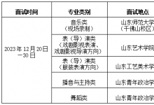 2024年山东播音与主持类统考考点时间安排 2024年山东播音与主持类统考面试时间安排 2023年12月20日一30日 面试地点 山东青年政治学院 面试地点 考试科目 详见山东省教育招生考试院网站各类考试说明...