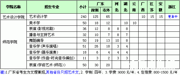 深圳大学2013年计划招收国家任务全日制艺术类本科生538名,分区域分专业计划如下: