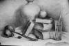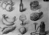 静物组合素描写生-乐艺济南美术培训,静物组合素描写生(瓷罐 玻璃杯 水果 瓷盘),单个静物素描写生,书与水果静物组合素描写生,书与眼镜静物组合素描写生