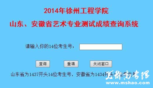 徐州工程学院2014年山东、安徽省艺术专业测试成绩查询系统已经开通!