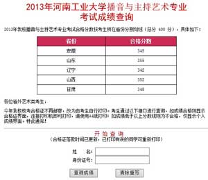 河南工业大学2014年播音与主持艺术专业考试成绩查询