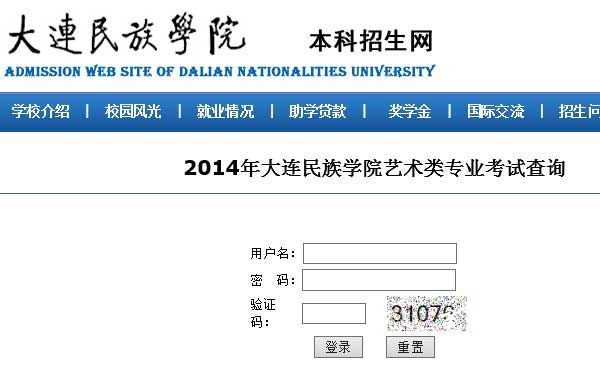 大连民族学院2014年艺术类专业校考成绩查询网址入口:http://zs.dlnu.edu.cn/ArtisSearch.aspx