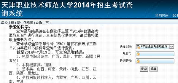 天津职业技术师范大学2014年招生考试查询系统已经开通,天津职业技术师范大学2014年高考录取查询网址入口:http://202.113.244.102/zhaoban/