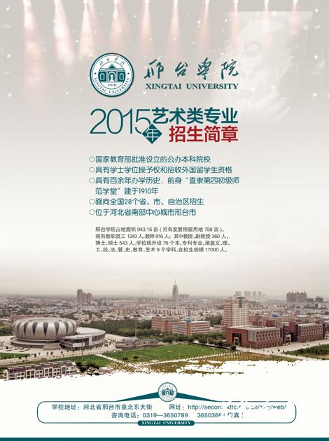 邢台学院是国家教育部批准建立的公办普通本科院校,招收普通本专科学生和外国留学生。国标代码:10104