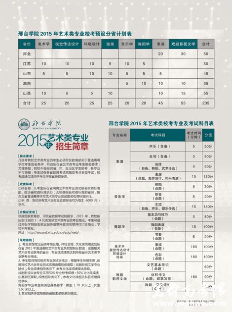 我校按招生计划的1:4比例发放艺术类专业校考合格证。考生可通过邢台学院招生就业服务信息网查询成绩并打印合格证,学校不再寄发。