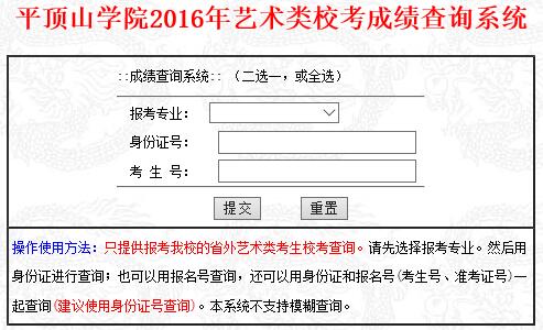 平顶山学院2016年艺术类校考成绩查询系统入口:http://zsxx.pdsu.edu.cn/yscx/