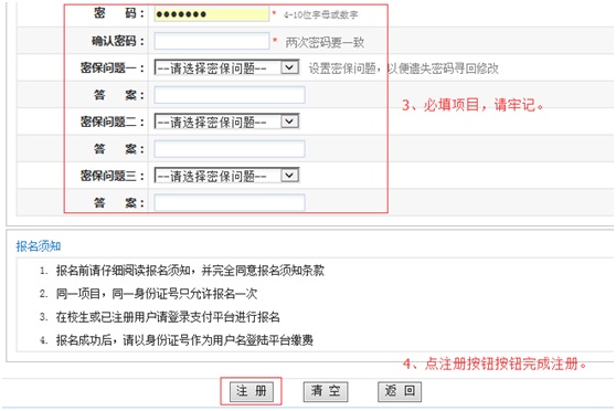 1、考生必须在本站报名系统注册后,才能开始报名,请考生牢记自己的登录密码。