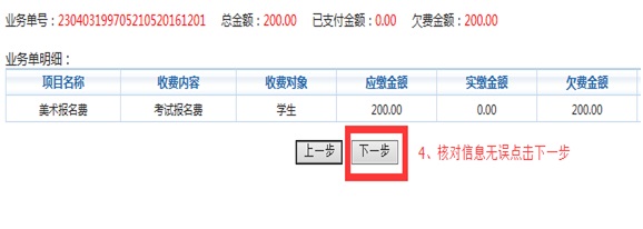 3、报名信息填写成功后须注册并登录在线缴费系统缴纳报名费,现场确认时不收取报名费,考生可通过中国银行、支付宝、微信支付等方式在线支付,具体步骤如下: