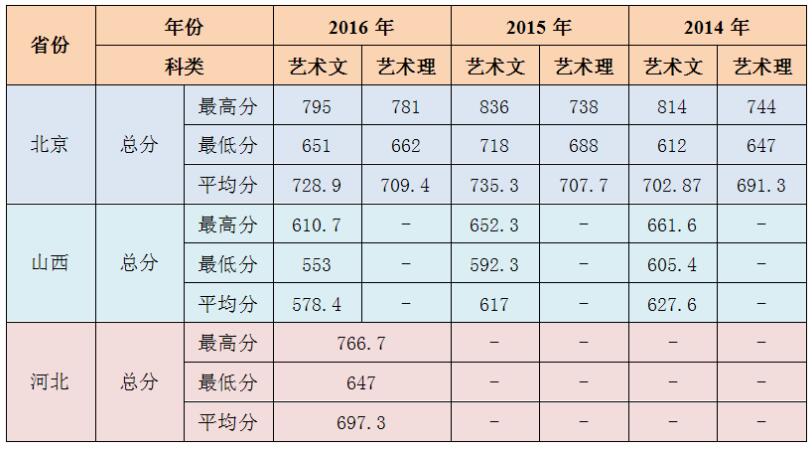 导读摘要:北京农学院2014-2016年环境设计专业录取分数线注:总分为高考文化课成绩加艺术类统测成绩(含附加分)。