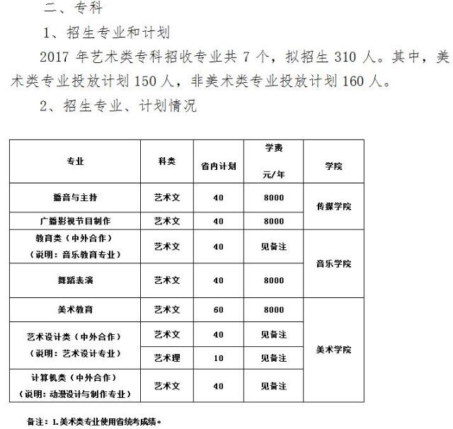 其他艺术专业按照专业成绩由高到低依次录取,专业成绩平行者,按照高考文化成绩由高到低依次录取,取满计划为止。
