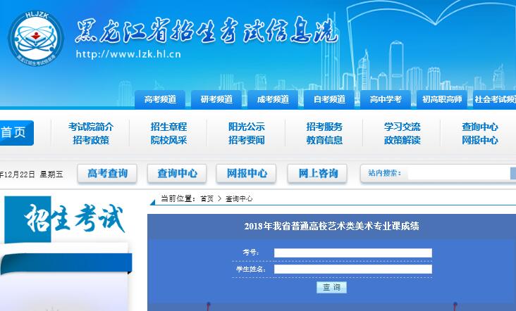 2018年黑龙江省美术联考成绩查询网址入口:http://www.lzk.hl.cn/cxzx/
