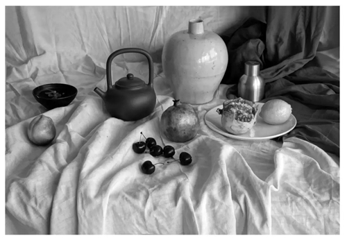 要求:1、按所提供的图片内容与构图,完成一幅色彩静物画。图片中物体的种类、形状、数量、位置不得更改。