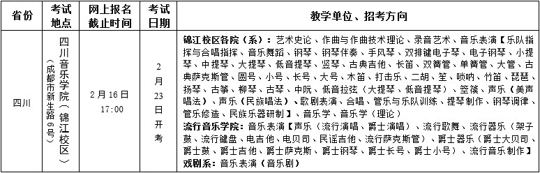 5.四川音乐学院(锦江校区)考点各专业考试日期标注为开考时间,各专业考试结束时间待网上报名结束后才能确定。