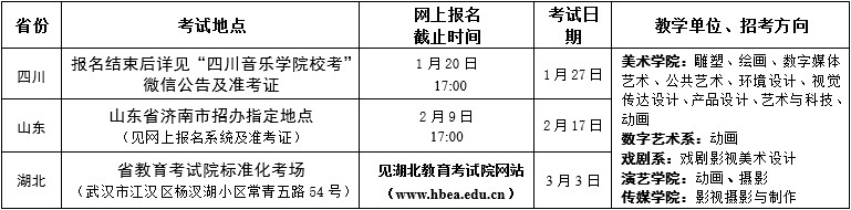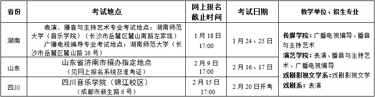 注意:影视摄影与制作和摄影专业只在四川音乐学院(锦江校区)考点组织招生专业考试(网上报名截止时间:2月15日17:00;开考时间:2月20日)。
