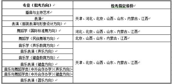 2.我校艺术类专业校考指定省份拟按下表设置,其他省份考生无须参加我校校考。