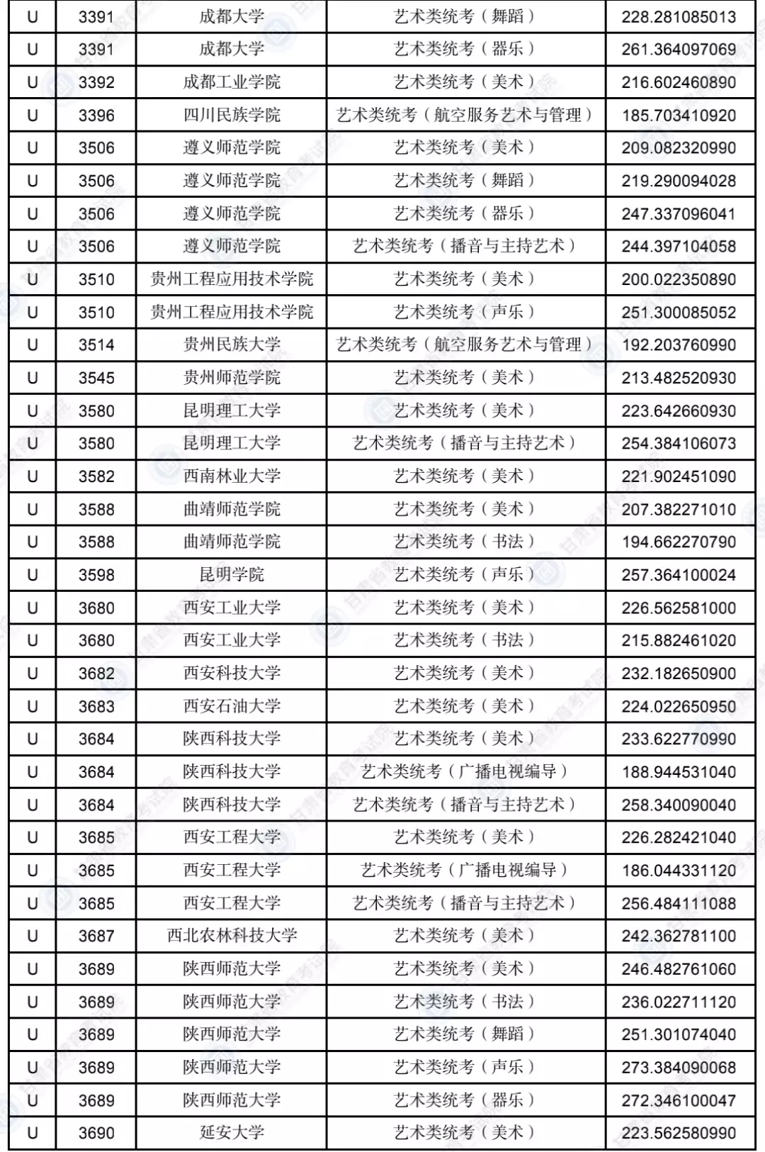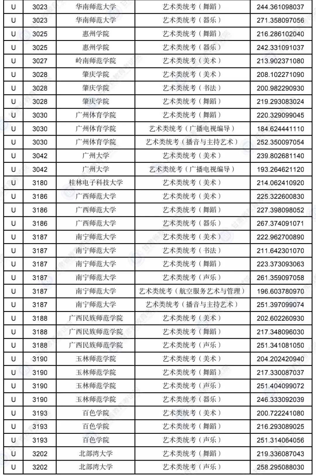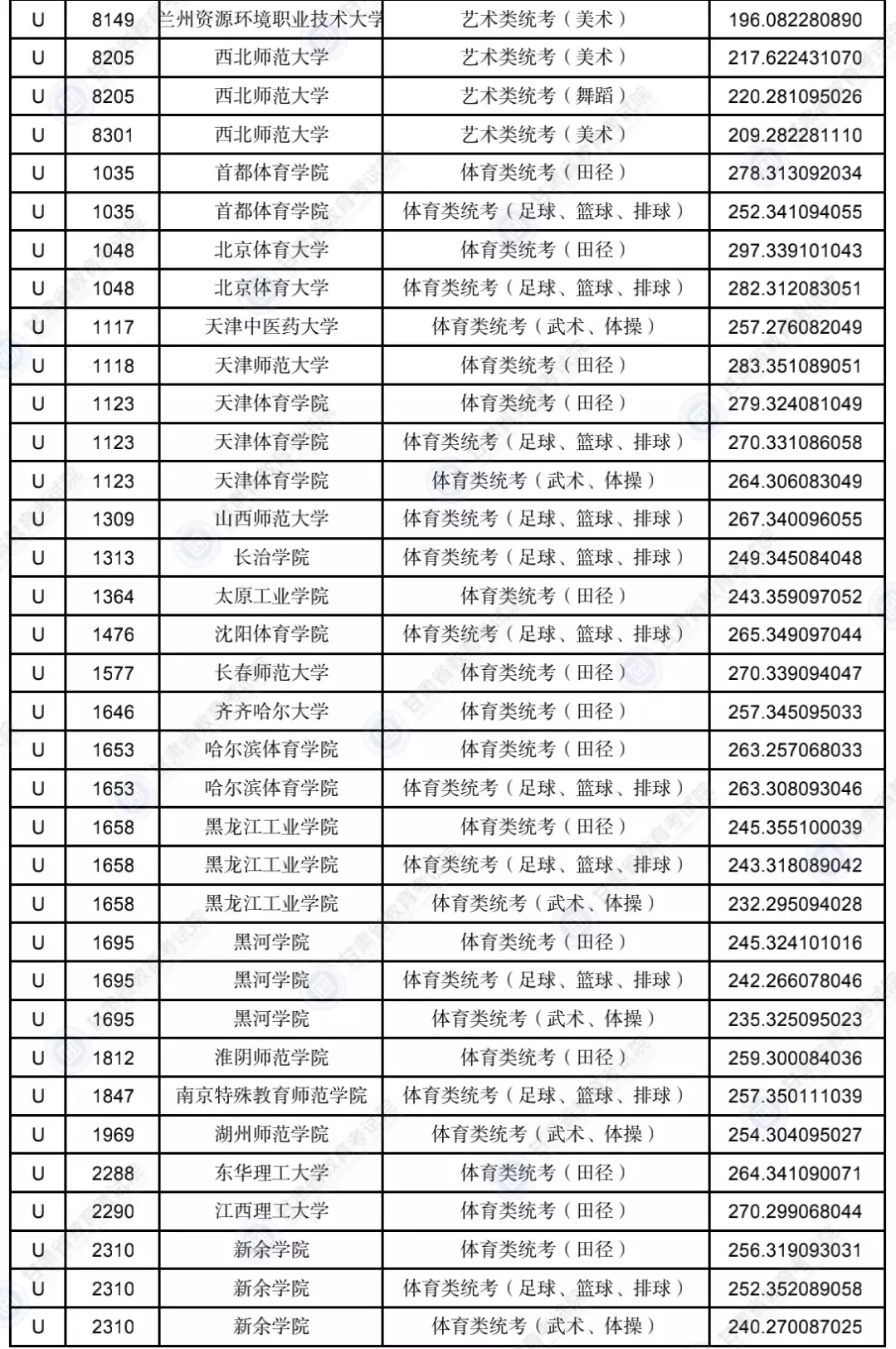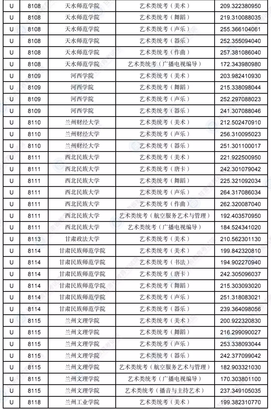 2023年甘肃省普通高校招生录取艺术体育类专业U段投档最低分公布