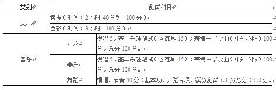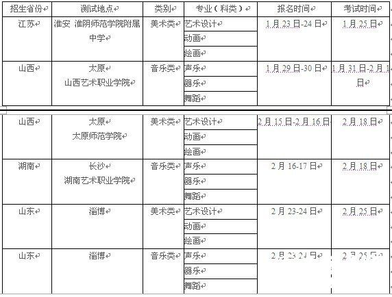 | 招生省份 | 测试地点 | 类别 | 招生专业 | 科类 | 专业考试安排 | ||