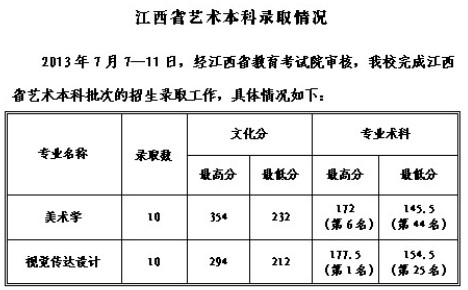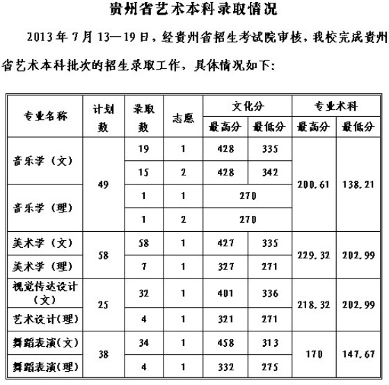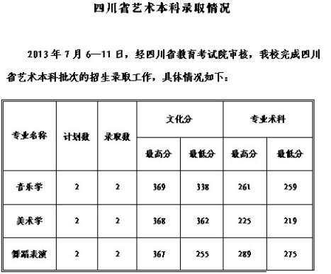 毕节学院2013年艺术类在四川,江西,江苏箸省的录取分数线