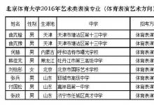 北京体育大学2016年艺术类表演专业(体育表演艺术方向)校考合格名单