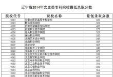 辽宁省2014年理工类专科院校最低录取分数 辽宁省2014年文史类专科院校最低录取分数