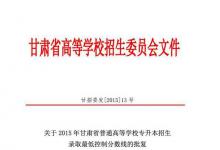 2015年甘肃专升本招生录取最低控制分数线