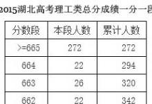 2015年湖北省普通高考总分成绩一分一段表(理工类)