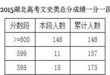 2015年湖北省普通高考总分成绩一分一段表(文史类)