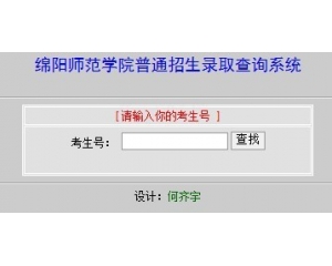[艺术类高考录取查询] 绵阳师范学院2010年高考录取查询 日期:2010-07-16 02:25:38 点击:336 好评:0