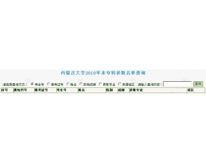 [艺术类高考录取查询] 内蒙古大学2010年高考录取查询 日期:2010-07-13 13:05:47 点击:257 好评:0