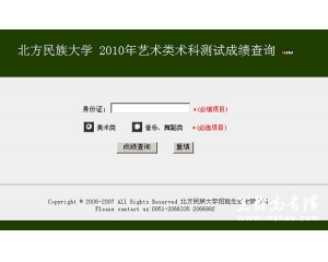 北方民族大学2010年艺术类术科测试成绩查询,北方民族大学2010年艺术类专业成绩查询,北方民族大学2010年艺术类成绩查询,北方民族大学2010年美术成绩查询,北方民族大学2010年专业成绩查询...