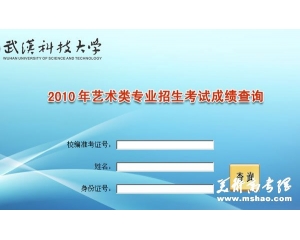 [2012艺术类院校专业查询] 武汉科技大学2010年艺术类专业成绩查询 日期:2010-03-15 16:32:36 点击:11565 好评:0