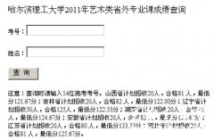 2011年哈尔滨学院艺术招生考试成绩查询,哈尔滨学院艺术招生考试成绩查询,哈尔滨学院艺术成绩查询,按照工作日程安排,哈尔滨学院艺术类单独考试成绩已经于4月1日按时上传,考生可以上网查询。网址:http://jwc.hrbu.edu.cn/zsxxw/dkchaxun.php...