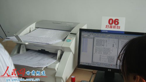 西北师范大学评卷点主要负责2010年高考文史类非选择题的评阅。记者在阅卷现场看到,4名解放军战士守卫在扫描区外,进入扫描区必须佩戴相关证件。在扫描区,考生试卷以考场和地区为单位进行扫描,工作人员在扫描前后多次对试卷数额进行统计。由于考生涂卡质量出现异常扫描时,工作人员会逐一核对,进行手工评阅。