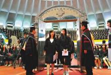 台湾辅仁大学13日迎接新生,让近5000新鲜人全穿上黑袍,举行庄严隆重的叩门礼,全场没人滑手机、聊天或打瞌睡。此外,位于淡水五虎岗的淡江大学,