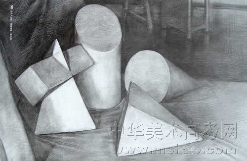 石膏几何体素描作品