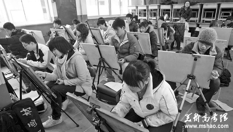 09年山东美术联考现场 首次统考,大考场换成了"小"考场。 (记者 王鸿光 摄)
