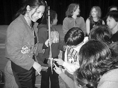 马晓晖(左)想将二胡这种传统乐器展示给世界,并通过二胡向世界介绍中国文化。张乃杰摄